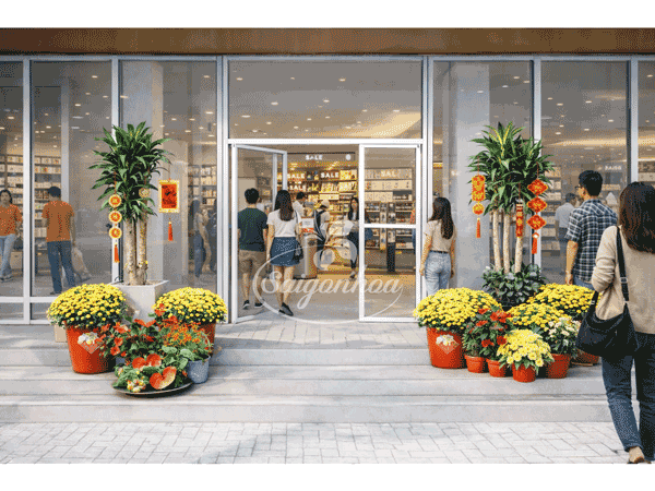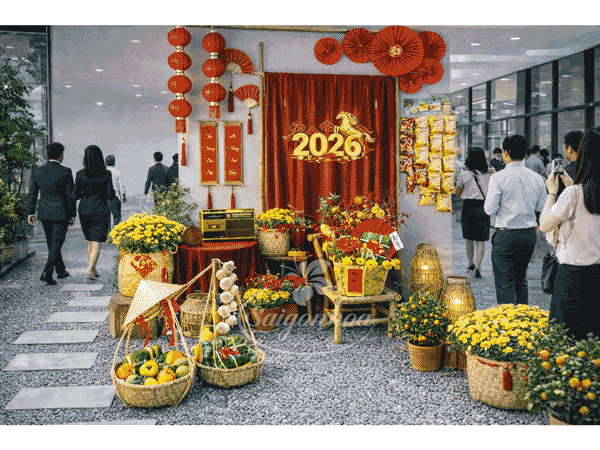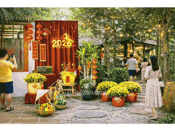 Với sự kết hợp hài hòa giữa thiết kế cảnh quan, yếu tố phong thủy và lựa chọn cây hoa Tết, những góc tiểu cảnh được tổ chức tinh tế vẫn đủ sức tạo nên không khí xuân trọn vẹn, tăng trải nghiệm khách hàng và mang ý nghĩa khởi đầu may mắn cho năm mới Bính Ngọ 2026.