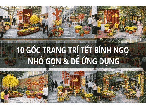 Dưới đây là 10 phối cảnh Trang Trí Tết Bính Ngọ nhỏ gọn, do Sài Gòn Hoa thiết kế và thi công, được phân tích chuyên sâu theo từng nhóm công trình và từng hình ảnh cụ thể.