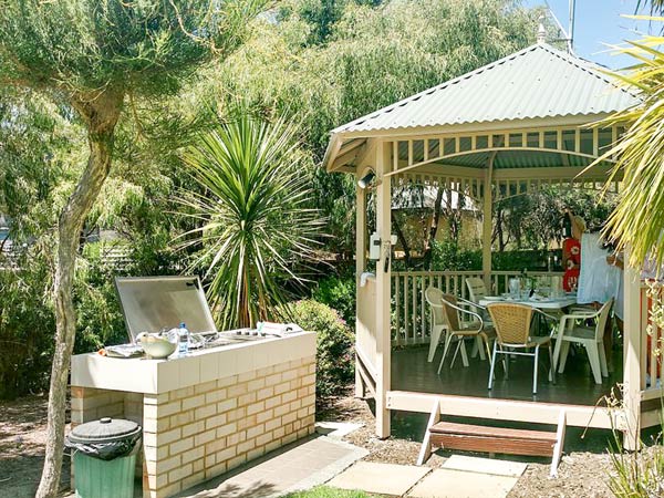 Nếu như chòi nghỉ được ứng dụng ở các sân trước nhà biệt thự lớn thì với khoảng sân sau, chòi nghỉ cũng được ưu tiên sử dụng vừa trang trí vừa tạo ra không gian nghỉ ngơi thư giãn, tách biệt với những ồn ào bên ngoài.