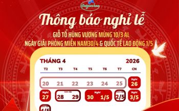 THÔNG BÁO LỊCH NGHỈ LỄ GIỖ TỔ HÙNG VƯƠNG, 30-04 & 01-05 NĂM 2026 Hòa vào không khí cả nước kỷ niệm ngày Giỗ Tổ Hùng Vương Mùng 10 tháng 3 AL, chào mừng 51 năm ngày miền Nam hoàn toàn giải phóng & kỷ…