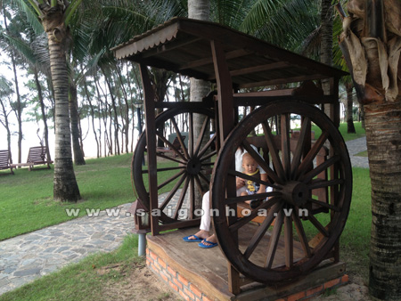 Từ những chiếc bánh xe bò bình dị đó có thể nâng cao tầm giá trị của nó bằng cách chế tác thành những sản phẩm vật dụng thân thuộc như: bàn, ghế, xích đu,…