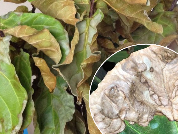 - Nếu trên lá có một vài đốm nâu, nên để cây khô trong 2 tuần giúp rễ hồi phục; loại bỏ lá hư và đem cây ra nơi có đủ ánh sáng mặt trời.