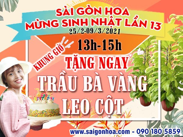 SÀI GÒN HOA MỪNG SINH NHẬT THỨ 13 Mừng sinh nhật Sài Gòn Hoa, kỷ niệm 13 năm ngày thành lập. Sài Gòn Hoa xin gửi đến Quý Khách Hàng lời cảm ơn chân thành sâu sắc, đã cùng chúng tôi đồng hành suốt thời gian qua. Nội dung chương trình : Cũng như tri…