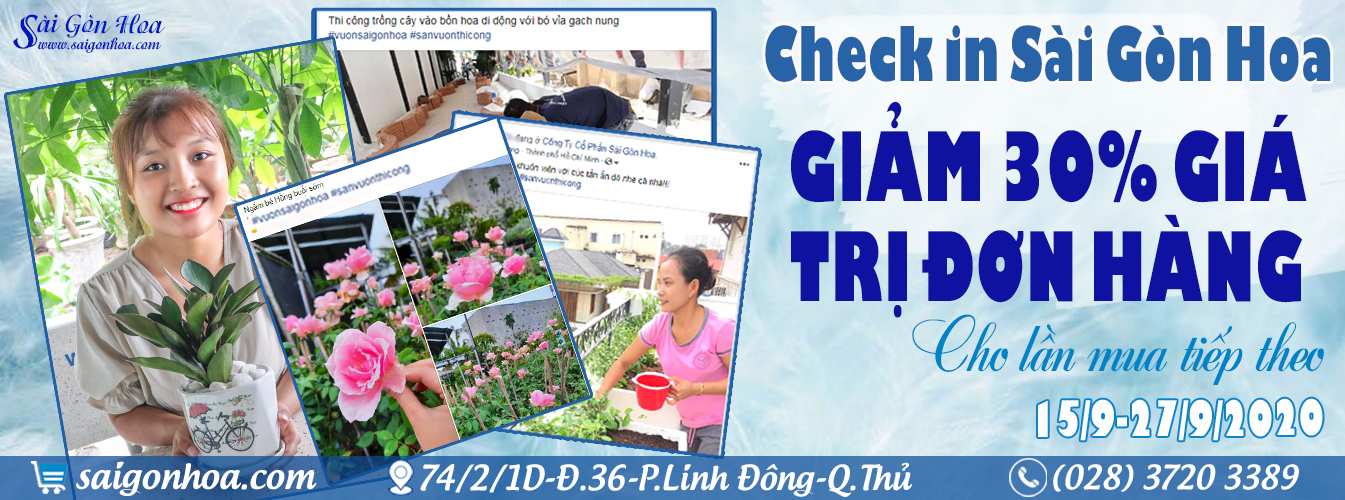 Nhằm mang đến thật nhiều năng lượng tươi mới và khuyến khích phong trào trồng thêm cây xanh cho khuôn viên sân vườn. Sài Gòn Hoa hân hạnh gửi đến bạn chương trình ưu đãi “Check in Sài Gòn Hoa nhận ngay ưu đãi”. Chỉ vài bước đơn giản bạn đã có thể làm xanh mới thêm cho trang cá nhân của mình và nhận NGAY những ưu đãi vô cùng hấp dẫn!