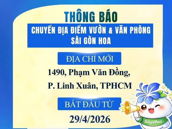 Từ ngày 29/04/2026 Vườn & văn phòng Công ty Cổ Phần Sài Gòn Hoa sẽ được chuyển sang địa điểm mới nhằm sắp xếp lại hoạt động kinh doanh.