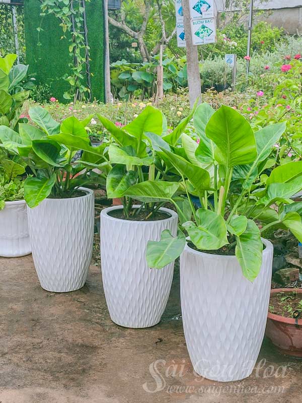 - Chậu dùng trồng các loài kiểng lá như: lan ý, lan ý mỹ lá lớn, cây phát tài/ thiết mộc lan; kim tiền, lưỡi hổ, cau nhật, mật cật, cọ ta,…