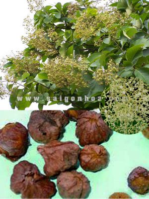 - Quả của cây Gía Tỵ là quả hạch, có hình cầu, có lông hình sao dày đặc, đường kính 2cm, phía ngoài có đài bao bọc màu vàng. Tháng 5-6 hoặc tháng 7-8 câyra hoa đến tháng 11-12 hoặc tháng 12-1 thì kết quả.