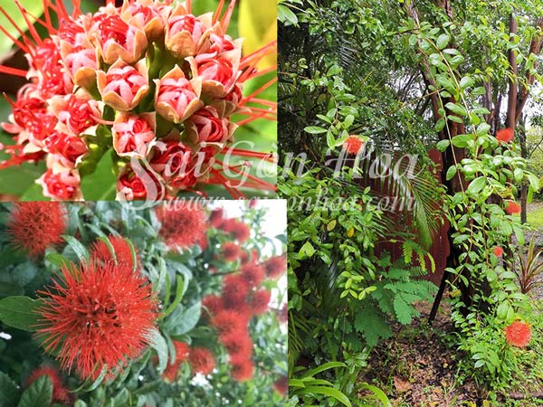 - Hoa hình cụm bông dày đặc, cụm hoa mọc ở đầu cành, hình trụ mang hoa màu đỏ, nở dần từ dưới lên, cánh tràng hợp thành ống ngắn, nhị dài thò ra ngoài màu đỏ.