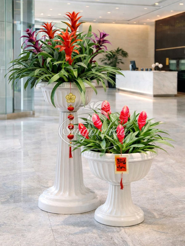 - Cụm hoa đỏ rực tạo điểm nhấn mạnh mẽ, giúp không gian thêm sang trọng – hiện đại – tràn đầy sức sống.