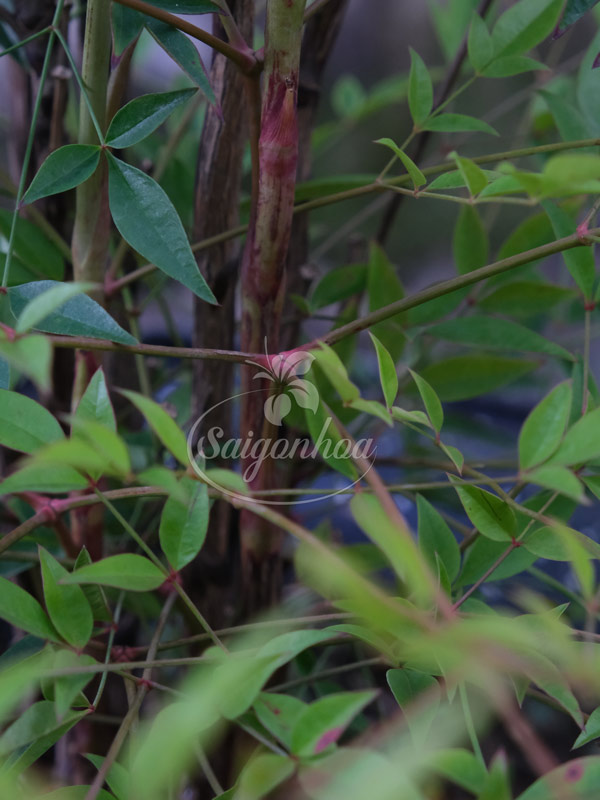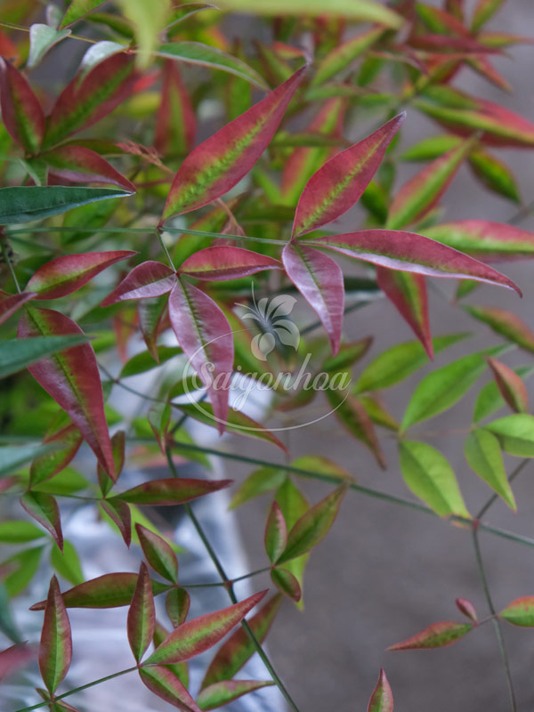 - Nam thiên trúc là loại cây cảnh thân gỗ nhỏ, nổi bật với tán lá mềm mại, màu xanh mát mắt. Lá non có màu hồng hoặc đỏ nhẹ, khi trưởng thành chuyển dần sang xanh đậm. Vào mùa đông, cây thường chuyển sắc rực rỡ, tạo điểm nhấn độc đáo cho sân vườn.