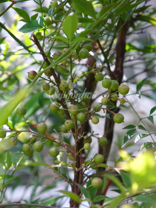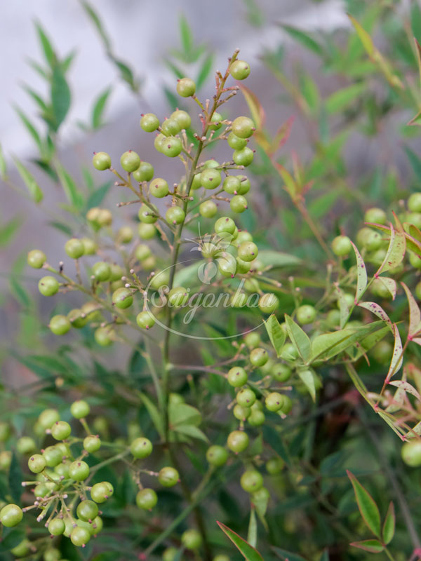 - Hoa của cây nam thiên trúc mọc thành chùm nhỏ ở đầu cành, màu trắng hoặc hồng phớt. Quả chín đỏ vào cuối thu, bền màu và có thể giữ lại đến mùa xuân.