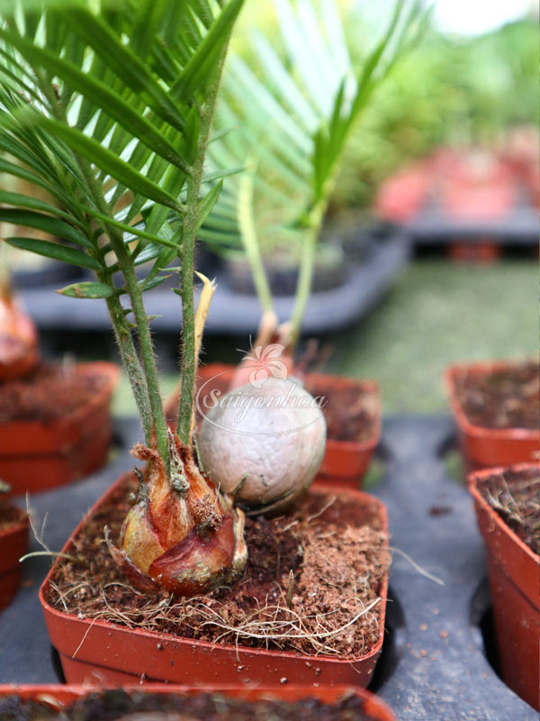 Cây loại nhỏ, loại củ, mỗi củ có 2 lá, dáng cây tương tự như cây vạn tuế lớn trồng sân vườn nhưng được thu nhỏ để phù hợp trang trí nội thất, để bàn, quầy kệ trưng bày,….