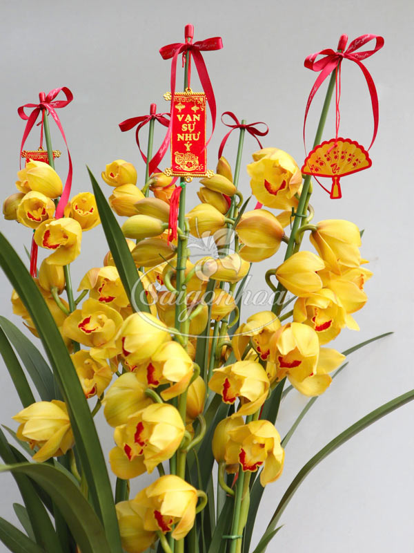 Chậu địa lan vàng Tết là một trong những lựa chọn hoàn hảo để làm quà tặng đối tác, Sếp, người thân và khách hàng bởi sự sang trọng, tinh tế và giá trị phong thủy tốt lành. Với sắc vàng rực rỡ tượng trưng cho phú quý – thịnh vượng, địa lan vàng góp phần mang đến không khí xuân ấm áp, may mắn tràn đầy.