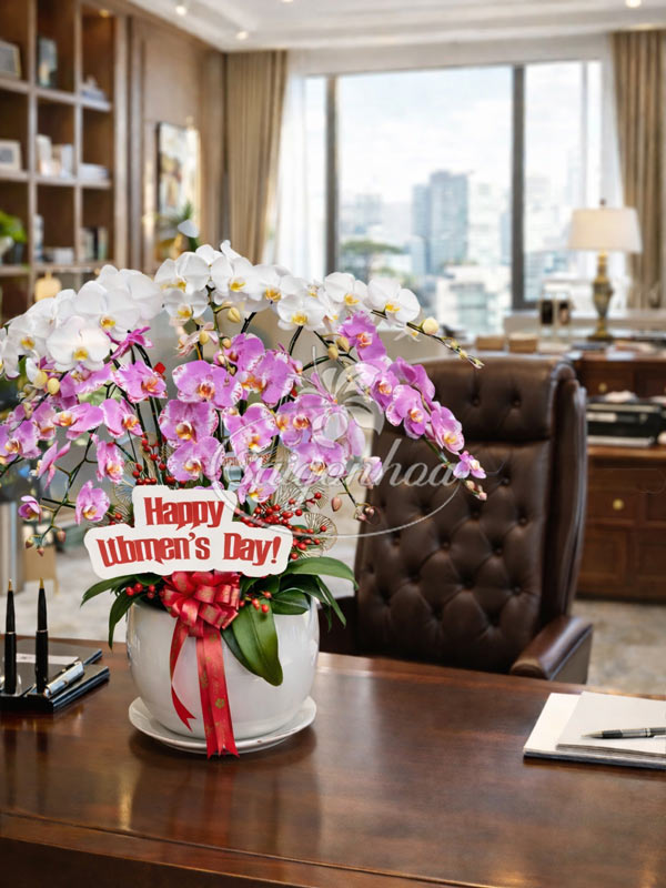 Chậu Hoa Lan Hồ Điệp 8-3 là món quà tặng sang trọng mang nhiều tầng ý nghĩa cho những dịp lễ đặc biệt, Tết, khai trương, tân gia, chúc mừng…Đặc biệt đây là lựa chọn tinh tế dành cho ngày Quốc tế Phụ nữ. Chậu lan được phối hợp hài hòa giữa sắc trắng tinh khôi và hồng tím ngọt ngào, mang ý nghĩa tôn vinh vẻ đẹp, sự mềm mại và bản lĩnh của người phụ nữ.