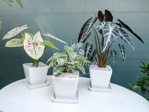 - Màu sắc trang nhã, đa dạng cho phép dễ dàng kết hợp chậu với màu sắc nội thất và các loại cây khác nhau như: Sen đá, Xương rồng, Lưỡi hổ mini, Trầu bà, Lan Ý mini, Cây may mắn hay cây phong thủy để bàn khác.