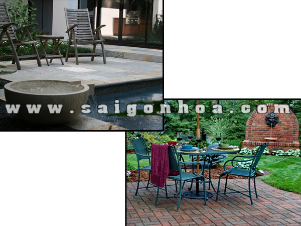 Công dụng: Patio và nước là sự kết hợp patio với các yếu tố nước làm khu ăn uống, vui chơi, thư giãn trở nên sinh động và mát mẻ hơn. Patio kết hợp được với nhiều yếu tố nước như tường nước, đài phun nước, hồ nước…