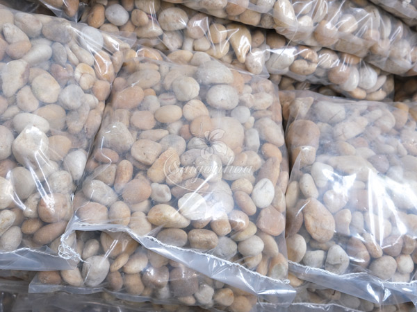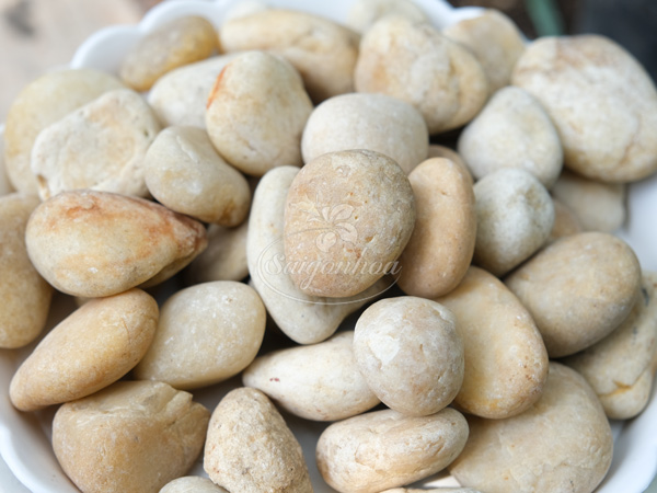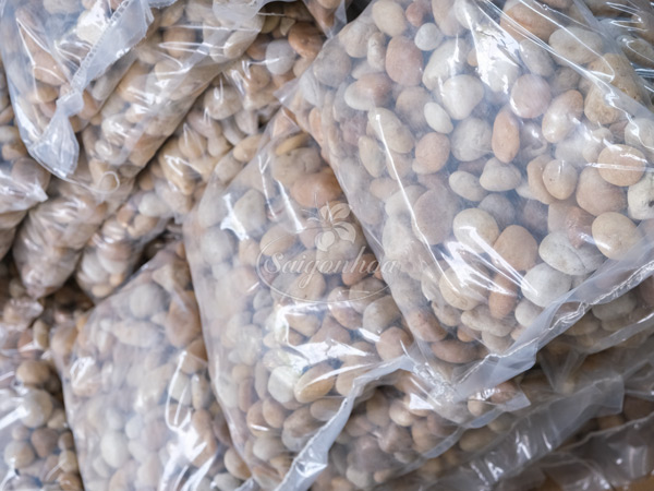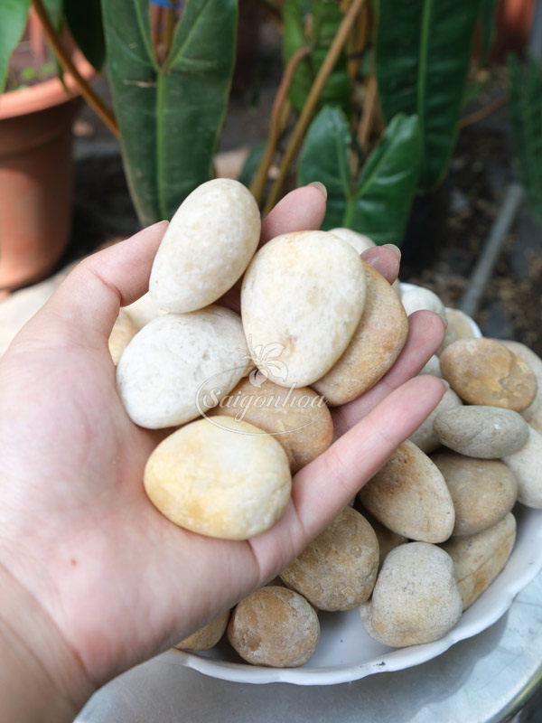 - Sỏi tự nhiên có kích thước 3 – 5cm, màu trắng ngà tự nhiên, sinh động.
