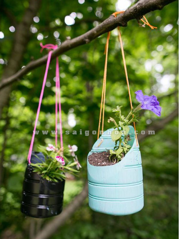 Với những chiếc vỏ lon cũ, bình sơn đã dùng hết, vỏ chai lọ nước uống, vỏ hộp sữa bột, thậm chí cả những chiếc giày da, ủng cũ,… đều có thể trở thành những chậu treo xinh xắn qua bàn tay của bạn.