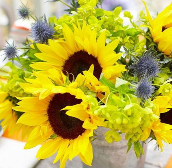 Việc trang trí bằng những bông hoa vàng trông thật rạng ngời và tràn đầy năng lượng. Hoa hướng dương là loài hoa tuyệt vời của mùa hè, chúng ko những chỉ đẹp khi ở ngoài trời mà còn cả ở trong nhà. Hoa hướng dương làm sân vườn và chiếc bàn trở nên lộng…