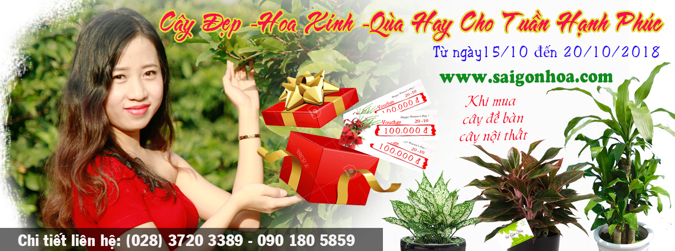 Cây Đẹp - Hoa Xinh - Qùa Hay Cho Tuần Hạnh Phúc Ngày phụ nữ Việt Nam 20-10 là một ngày lễ nhằm tôn vinh phụ nữ Việt. Hòa nhịp vào ngày lễ tôn vinh trọng đại ấy Sài Gòn Hoa gửi đến quý khách hàng chương trình khuyến mãi mang tên: Cây Đẹp - Hoa…