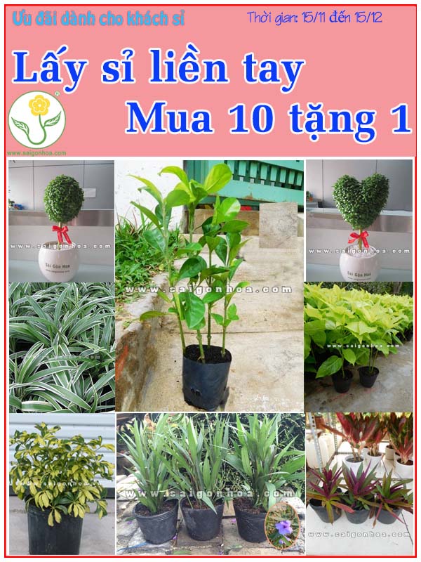Để gửi lời cảm ơn đến với khách hàng sỉ đã quan tâm và đồng hành cùng Sài Gòn Hoa trong suốt thời gian qua, Công ty Cổ Phần Sài Gòn Hoa tổ chức chương trình MUA 10 TẶNG 1 vô cùng hấp dẫn: " LẤY SỈ LIỀN TAY- MUA 10 TẶNG 1 " Thời…